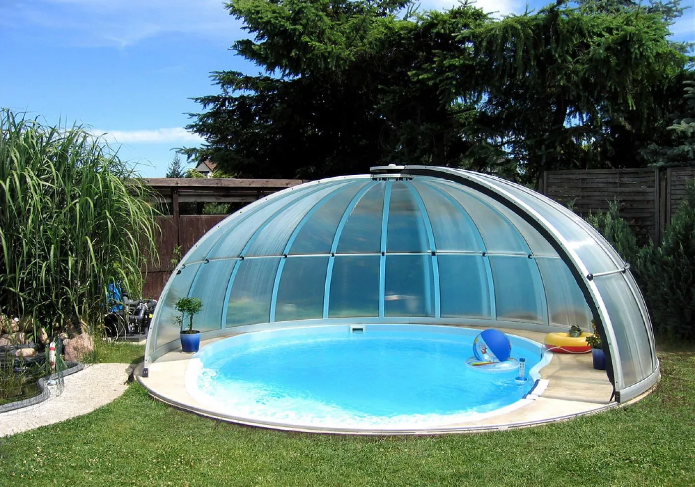Павильон Orient оснащен раздвижными секциями, что позволяет легко открывать более трети купола для вентиляции и регулировки температуры внутри павильона в жаркие дни. Кроме того, предусмотрены одна или две раздвижные двери, обеспечивающие удобный доступ к бассейну. Полуавтоматические элементы позиционирования и фиксации павильона повышают безопасность и удобство использования.