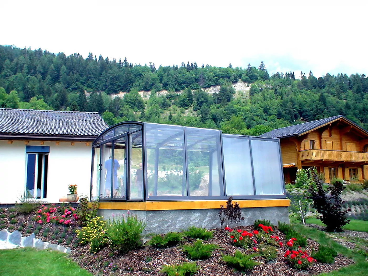 - Раздвижная конструкция: Павильон относится к раздвижным моделям. Его секции с торцов легко перемещаются по рельсам и могут полностью открыться в солнечную погоду, обеспечивая максимальный доступ к свежему воздуху.