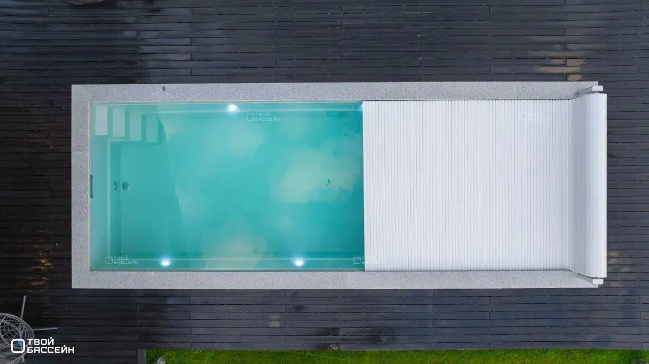 SPA-зона с гидромассажем превращает обычное купание в сеанс релаксации, а пляжная платформа добавляет ноту курортного отдыха. Роллетное покрытие сохраняет воду кристально чистой, а дизайн – лаконичным и статусным.